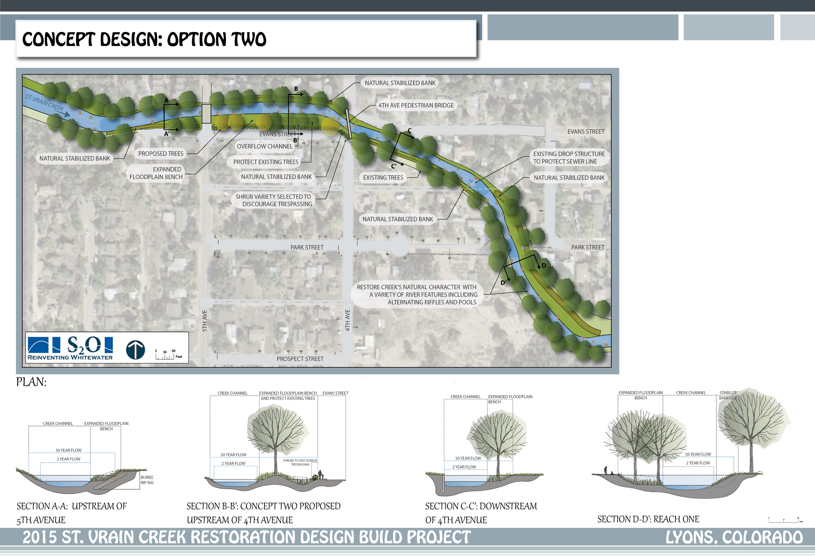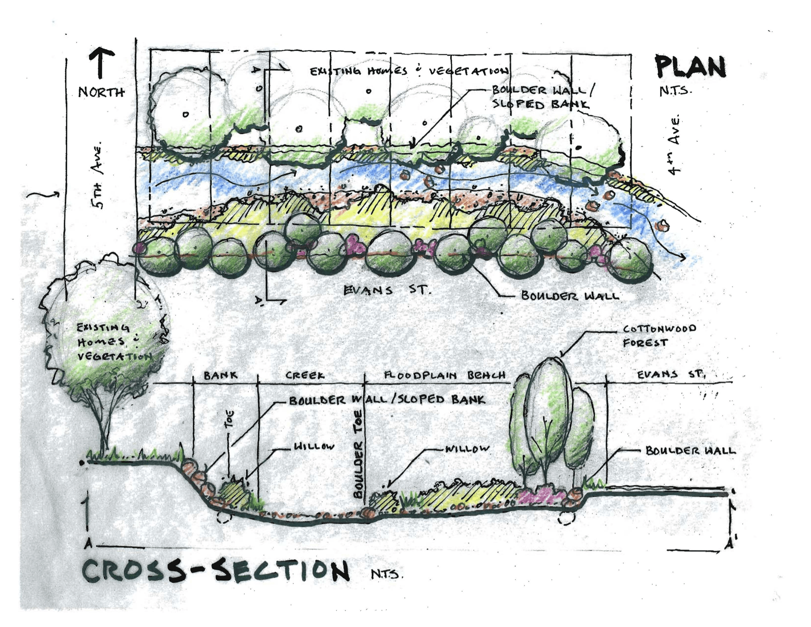 While it is absolutely critical that some trees be removed in order to construct the remodeled floodplain, every effort will be made to preserve as much existing vegetation as possible, giving preference to the healthy natives and removing non-native and sickly trees that have populated the creek corridor for many decades.