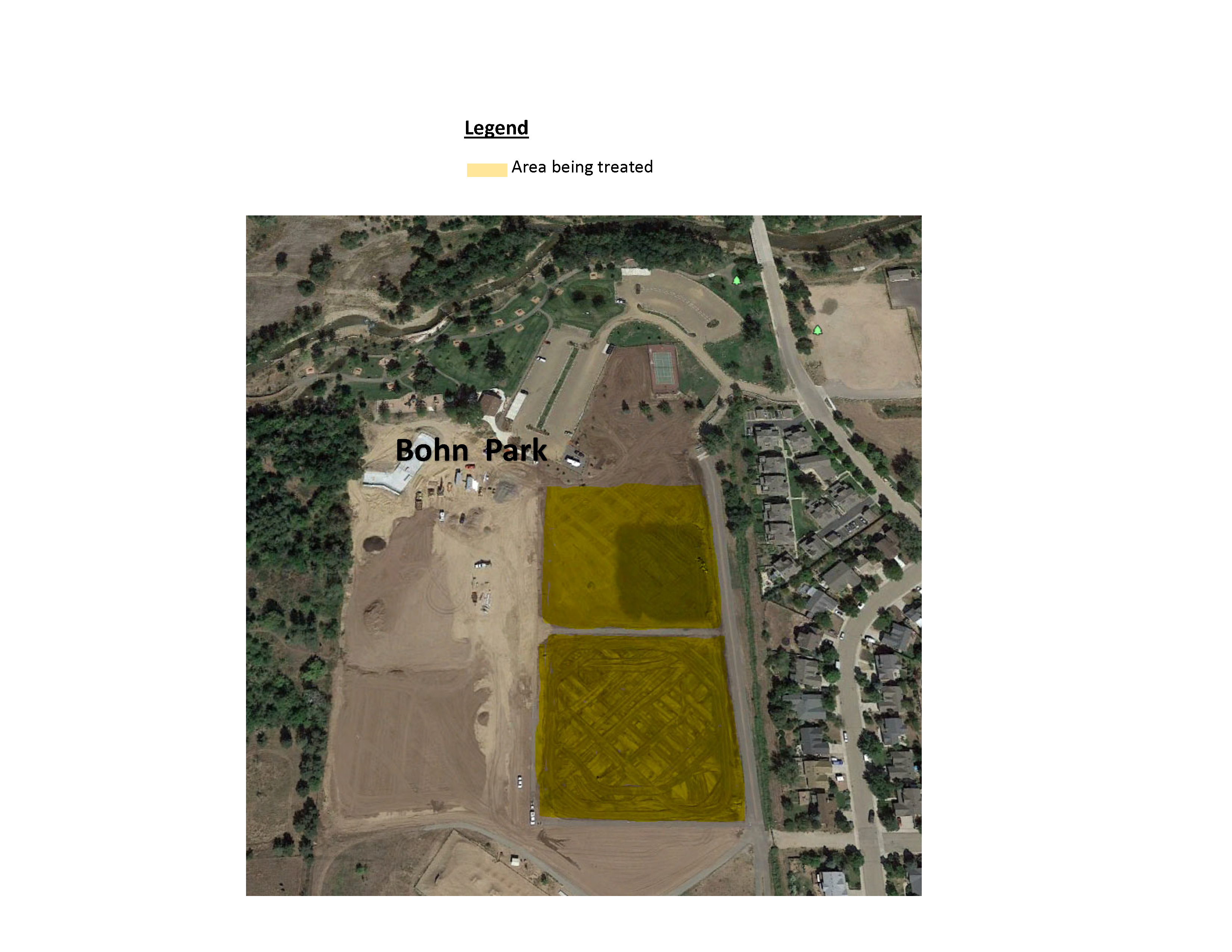 OrganoLawn of Boulder, has been contracted by Walsh Construction and the Town of Lyons for broadleaf weed mitigation at Bohn Park, 199 2nd Ave on July 22, 2020 (dependent on weather and other scheduling).