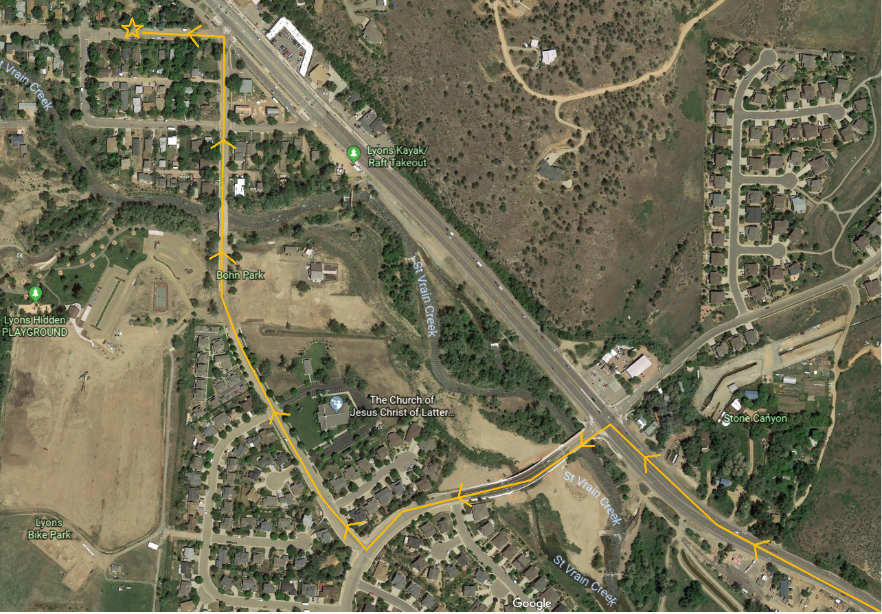On Wednesday, Feb. 20, beginning around 9 a.m., two modular units are scheduled to be delivered to 236 Evans St. The units will be transported from the City of Longmont's decommissioned water treatment plant site (recently purchased by the Town of Lyons) near the US-36/CO-66 intersection. From there, they will head west on US-36; turn onto McConnell Dr.; turn north onto 2nd Ave.; and reach the destination by heading west on Evans St. (see map below).